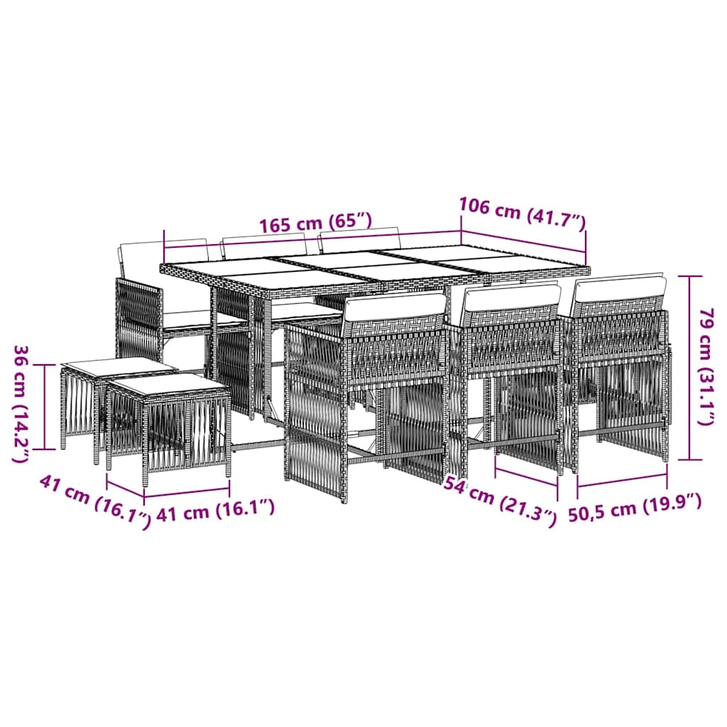 vidaXL Sodo komplektas su pagalvėlėmis, 11 dalių, pilkas, poliratanas