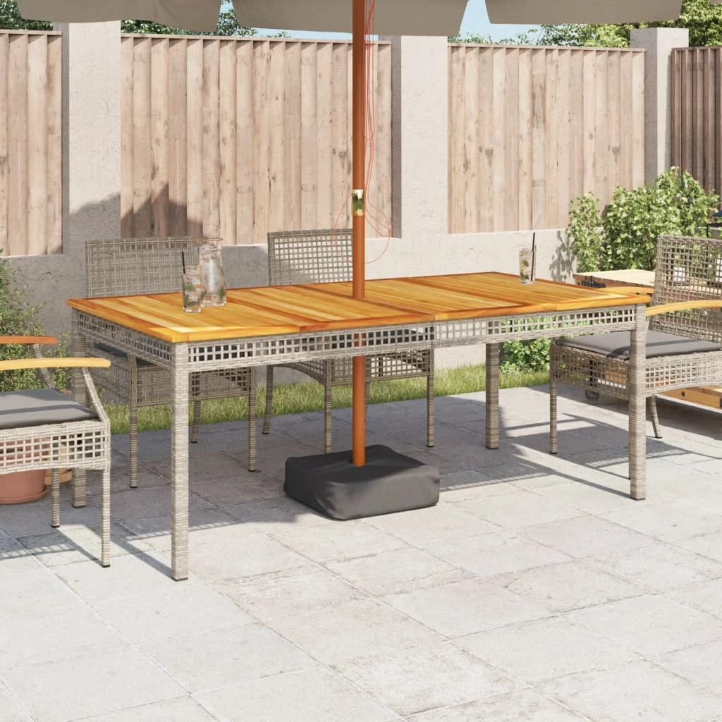 vidaXL Sodo stalas, pilkas, 180x90x75cm, poliratanas ir akacija