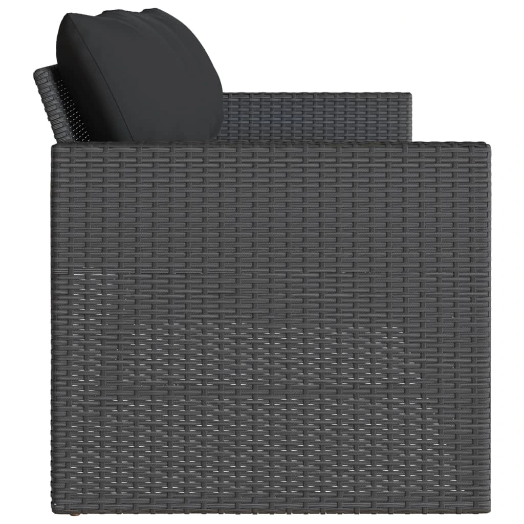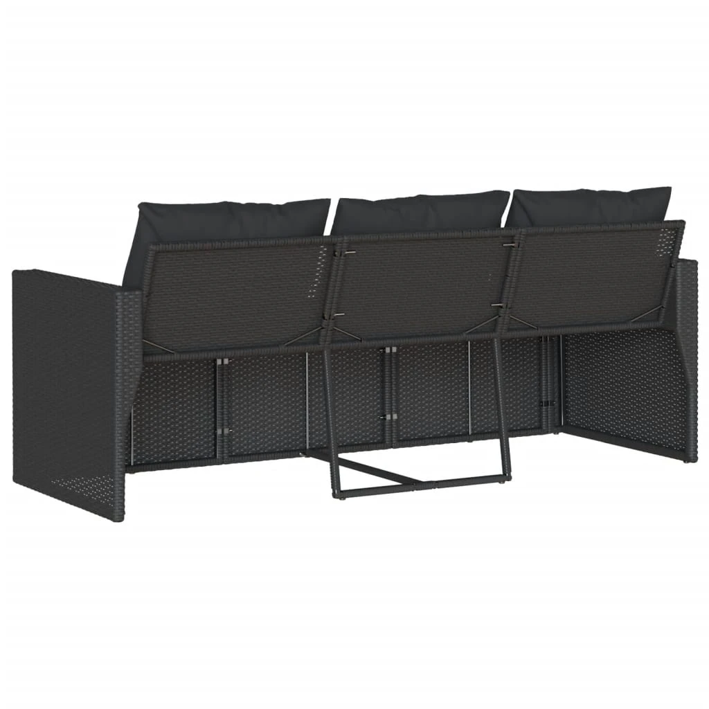 vidaXL Trivietė sodo sofa su pagalvėlėmis, juodos spalvos, poliratanas