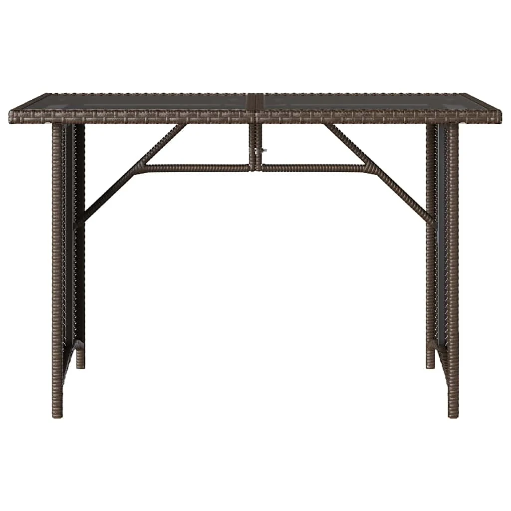 vidaXL Stalas su stikliniu stalviršiu, rudas, 110x68x70cm, poliratanas