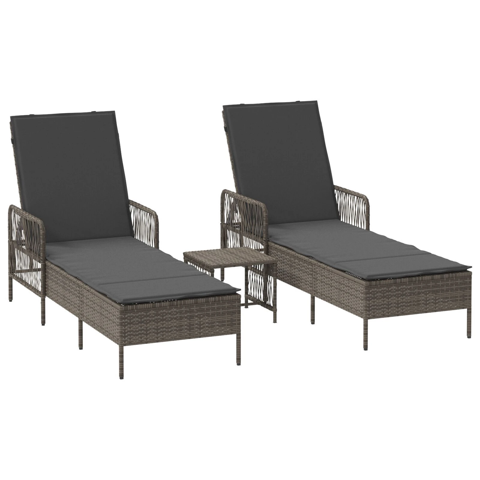 vidaXL Saulės gultas 2-asmuo 3 pcs Pilka ir tamsiai pilka poliratanas