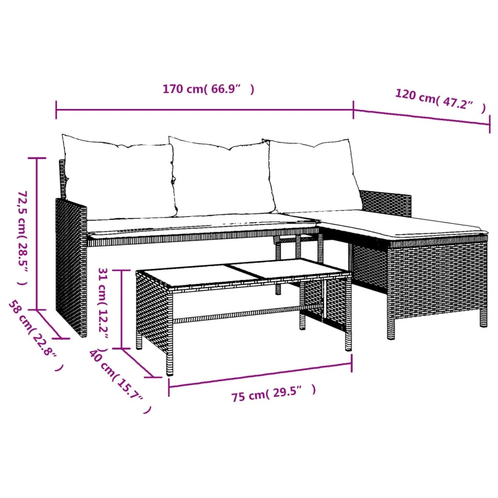 vidaXL Sodo Sofų Rinkinys su pagalve su saugykla Juoda Poli ratanas