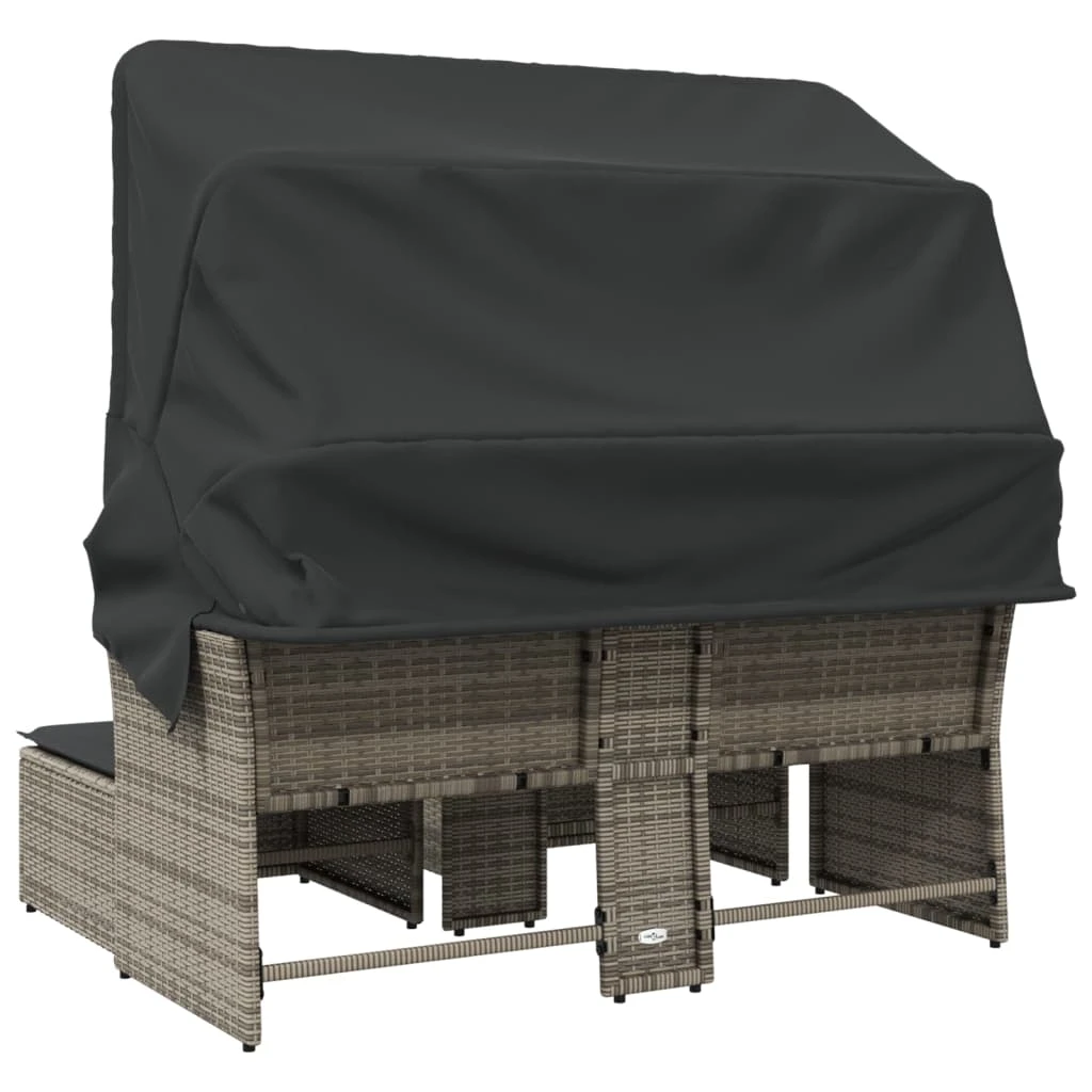 vidaXL Dvivietė sodo sofa su skliautu-taburetėmis, pilka, poliratanas