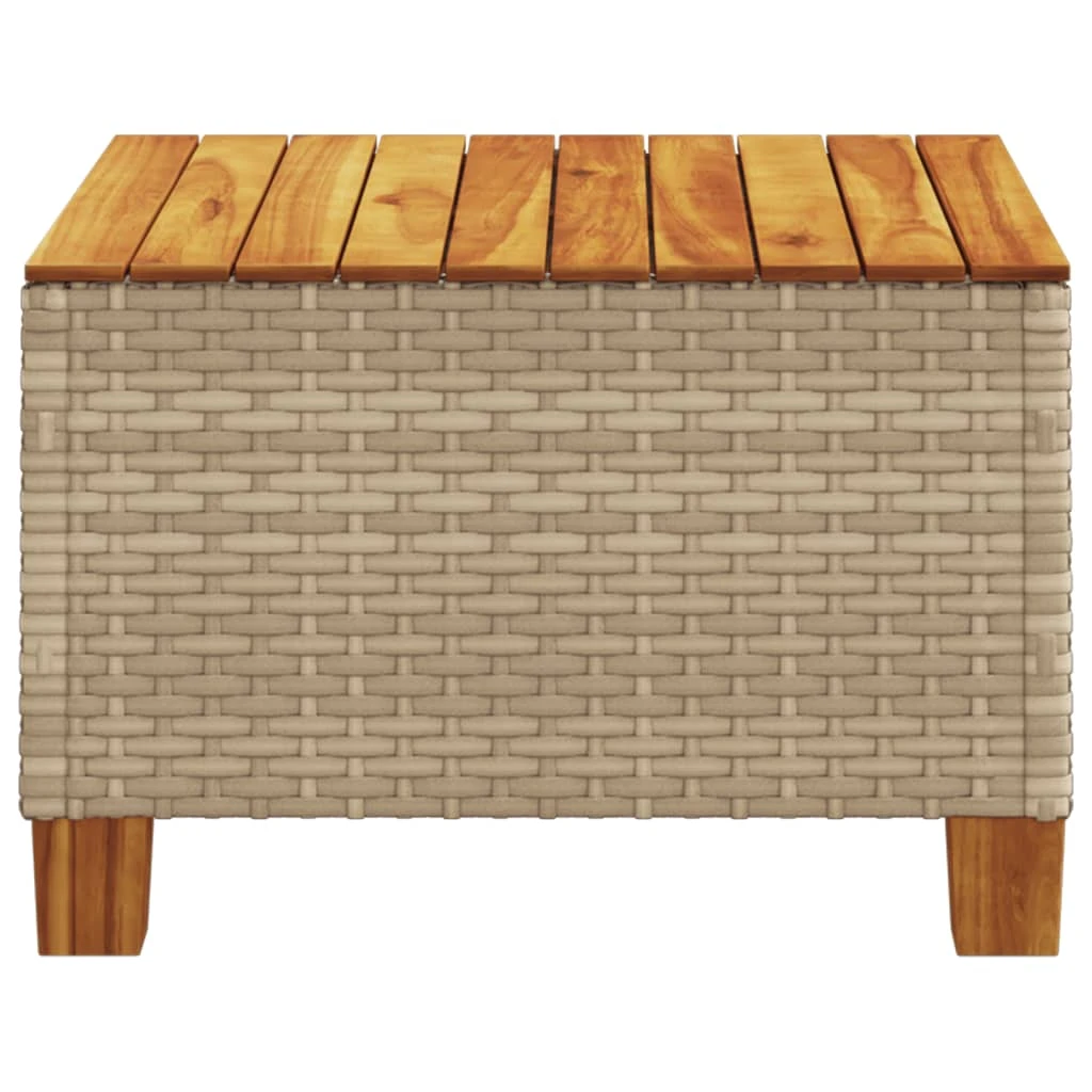 vidaXL Sodo stalas, smėlio, 55x55x36cm, poliratanas-akacijos mediena