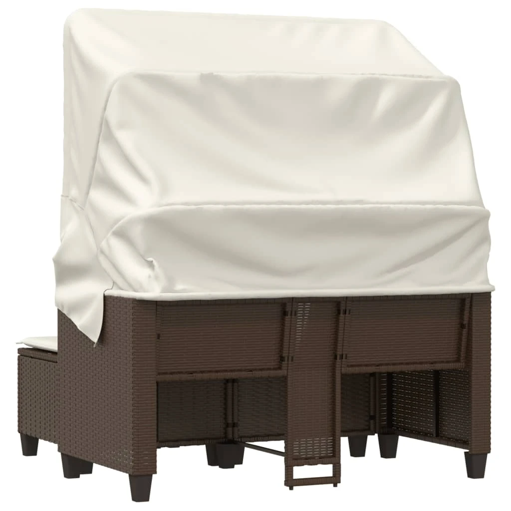 vidaXL Dvivietė sodo sofa su skliautu-taburetėmis, ruda, poliratanas