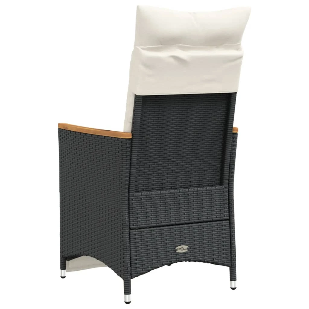 vidaXL Atlošiama sodo kėdė su pagalvėlėmis, juoda, poliratanas