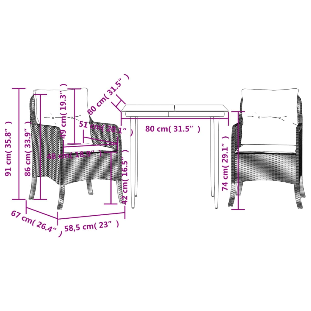 vidaXL Sodo komplektas su pagalvėlėmis, 3 dalių, rudas, poliratanas