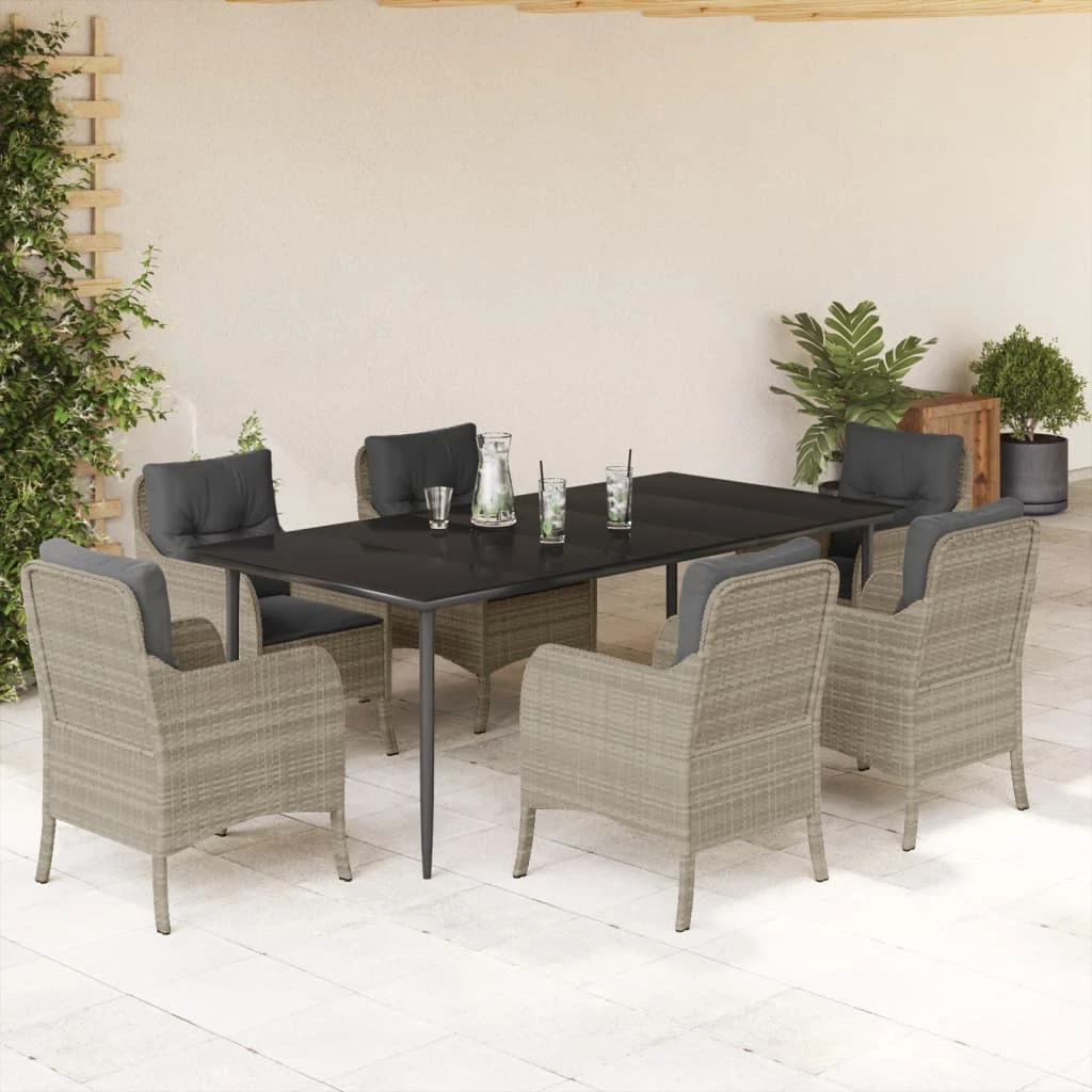 vidaXL Sodo komplektas su pagalvėlėmis, 7 dalių, pilkas, poliratanas
