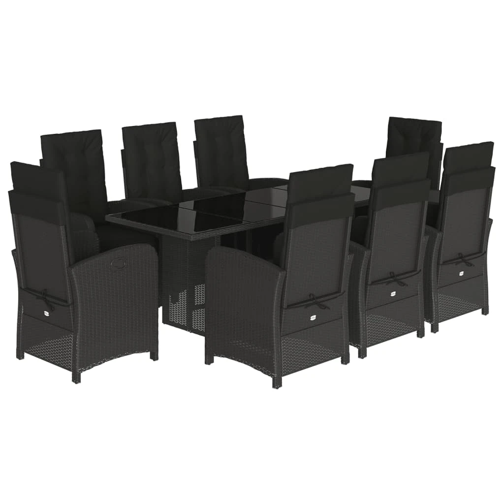 vidaXL Sodo komplektas su pagalvėlėmis, 9 dalių, juodas, poliratanas