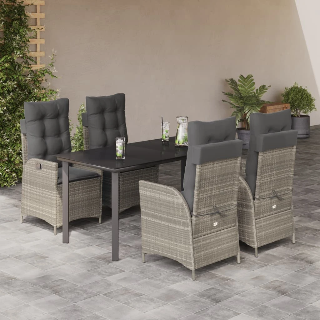 vidaXL Sodo komplektas su pagalvėlėmis, 5 dalių, pilkas, poliratanas