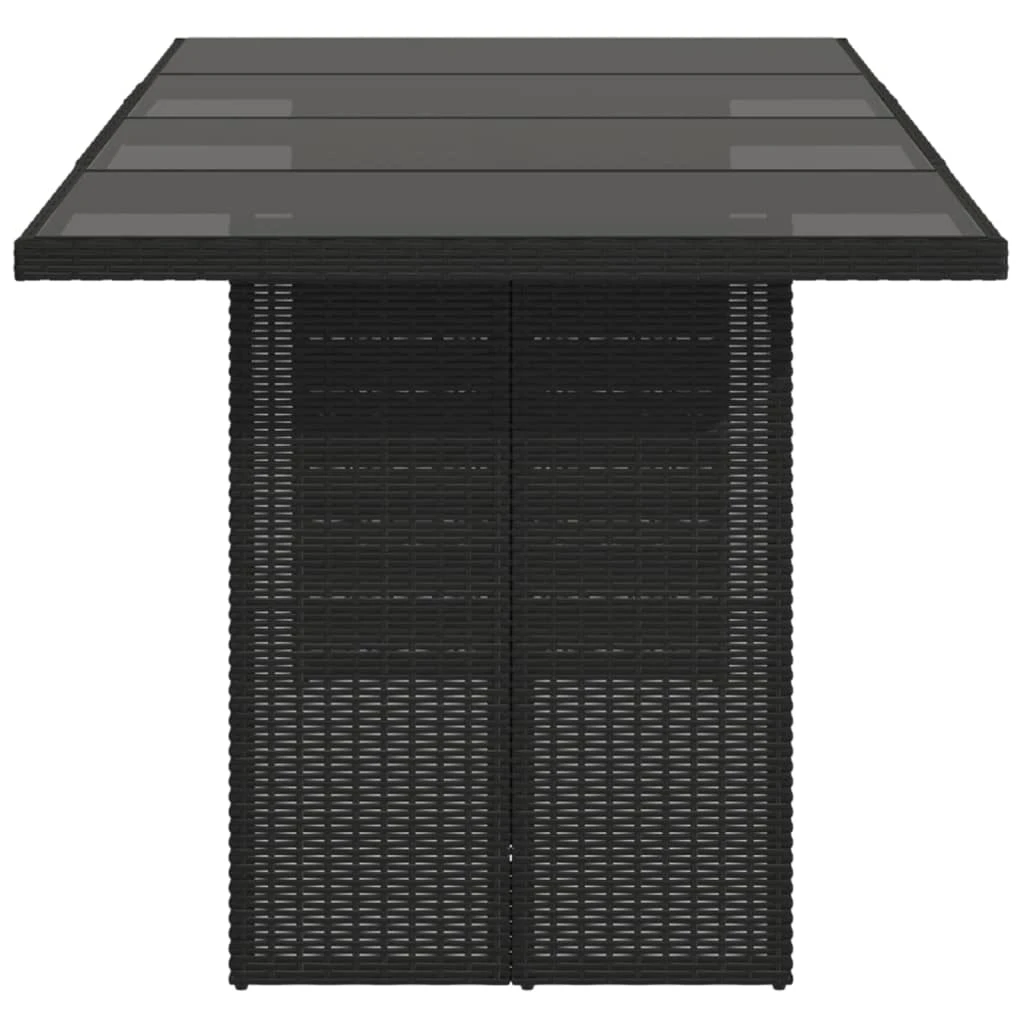 vidaXL Stalas su stikliniu stalviršiu, juodas, 190x80x75cm, PE ratanas