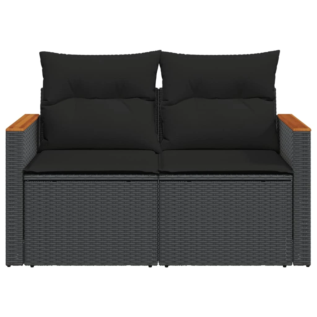 vidaXL Dvivietė sodo sofa su pagalvėlėmis, juodos spalvos, poliratanas