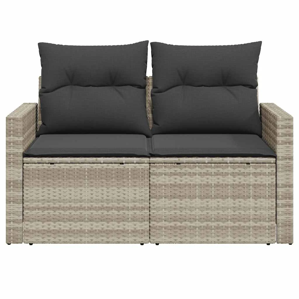 vidaXL Dvivietė sodo sofa su pagalvėlėmis, šviesiai pilka, poliratanas