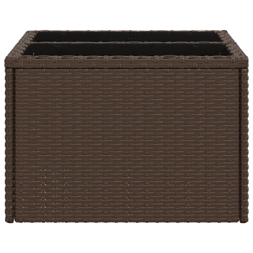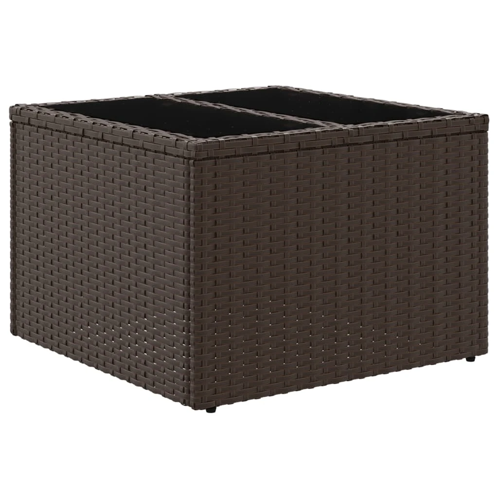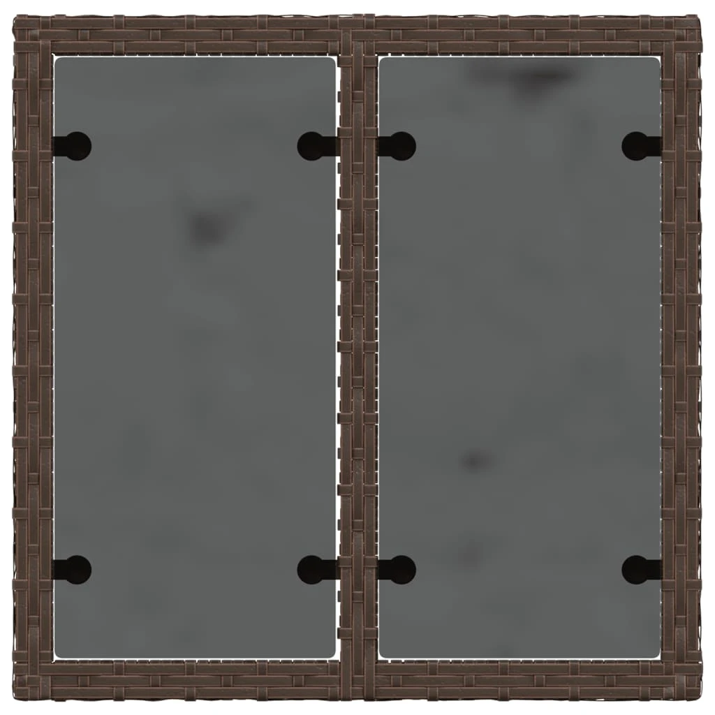 vidaXL dārza galds ar stikla virsmu, 55x55x37cm, brūns PE rotangpalma