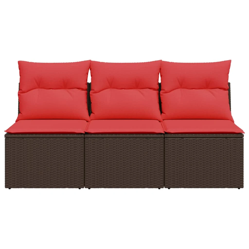 vidaXL Sodo sofa su pagalvėlėmis, 3 sėdimos vietos, ruda, polirotangas