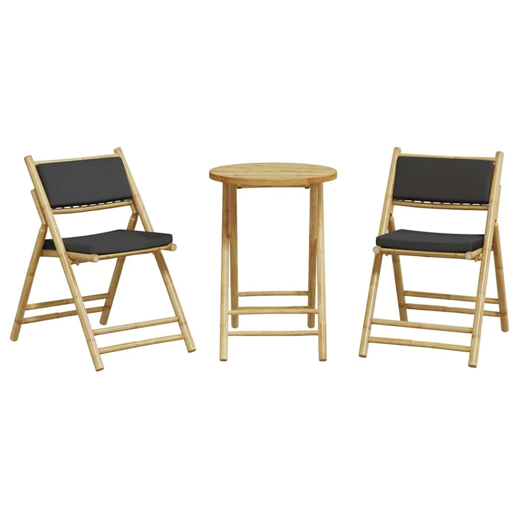 vidaXL Bistro komplektas su pilkomis pagalvėlėmis, 3 dalių, bambukas