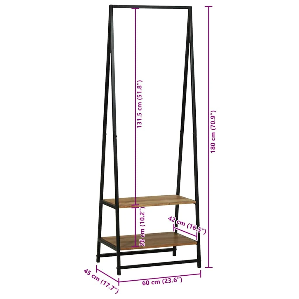 vidaXL Drabužių stovas Juoda 60 x 45 x 180 cm Kietos akacijos mediena
