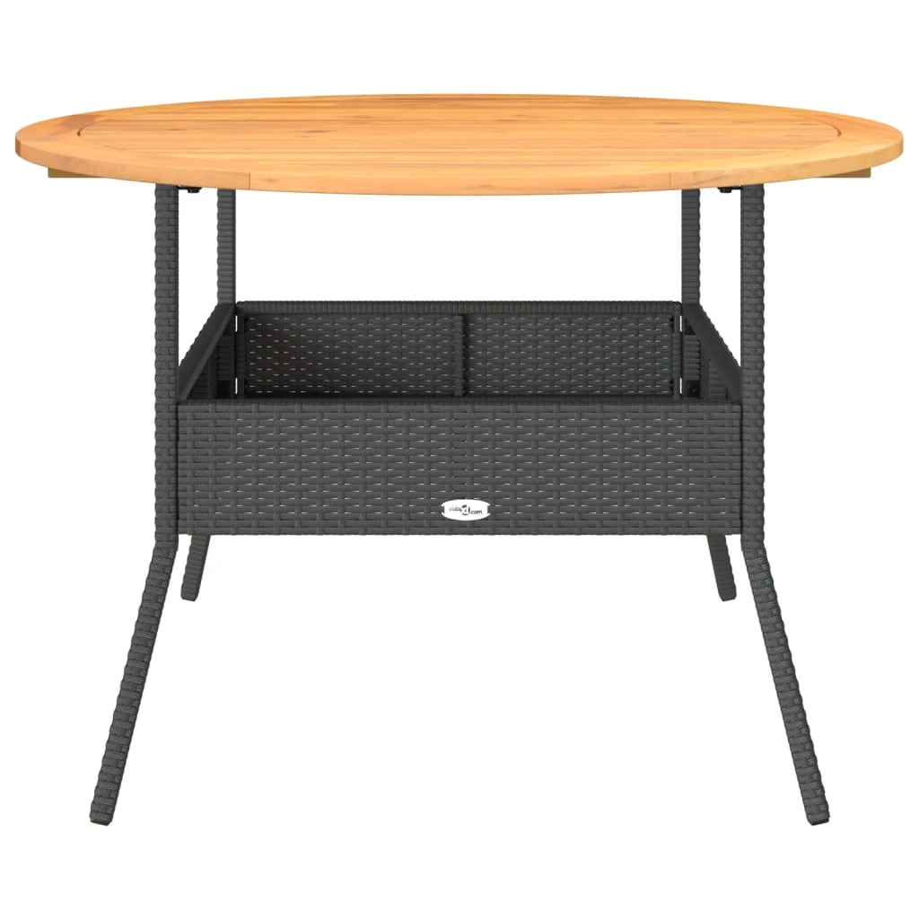 vidaXL Stalas su akacijos stalviršiu, juodas, 110x71cm, poliratanas