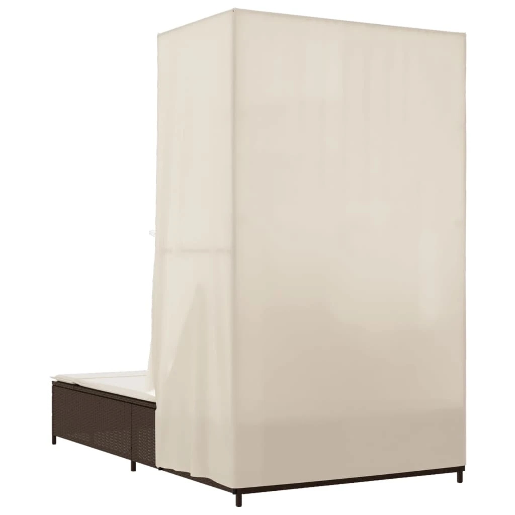 vidaXL Dvivietis saulės gultas su stogeliu ir užuolaidomis, rudas