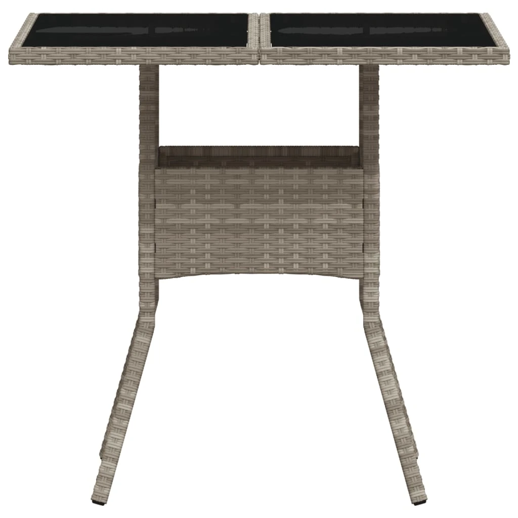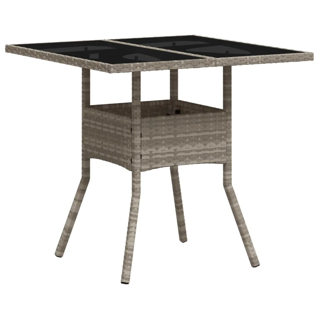 vidaXL Stalas su stikliniu stalviršiu, pilkas, 80x80x75cm, poliratanas