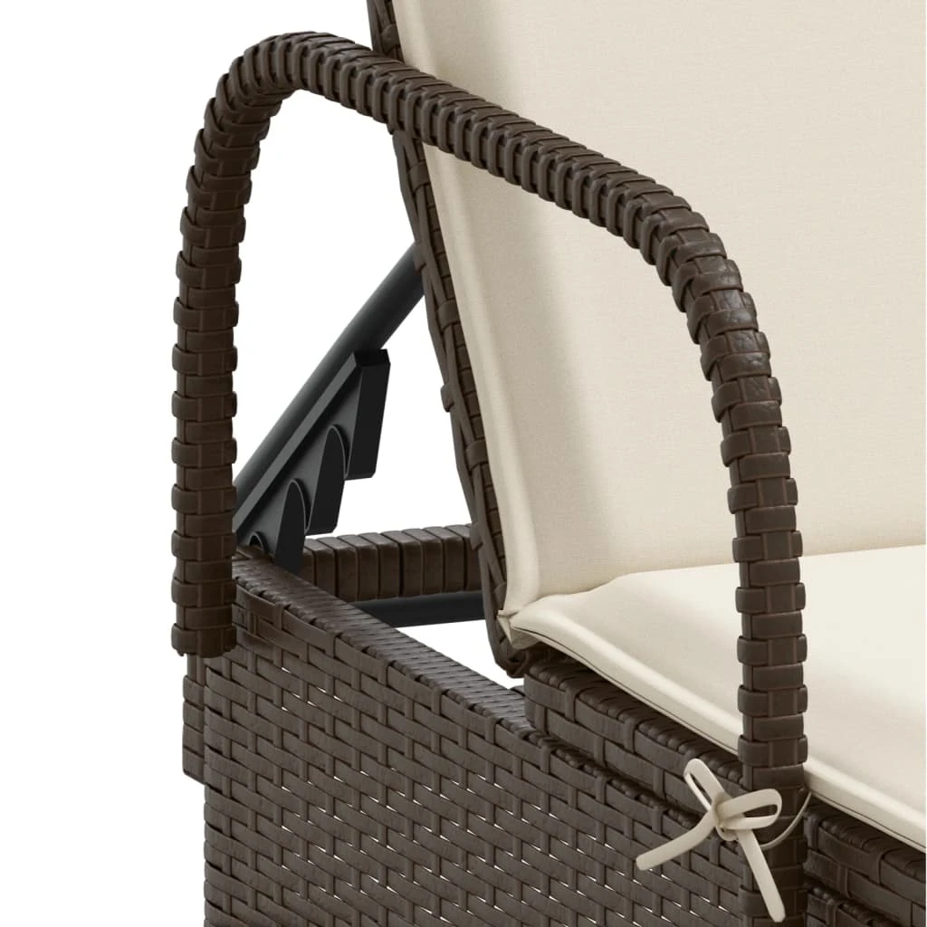 vidaXL Saulės gultas su ratukais ir čiužinuku, poliratanas, rudas