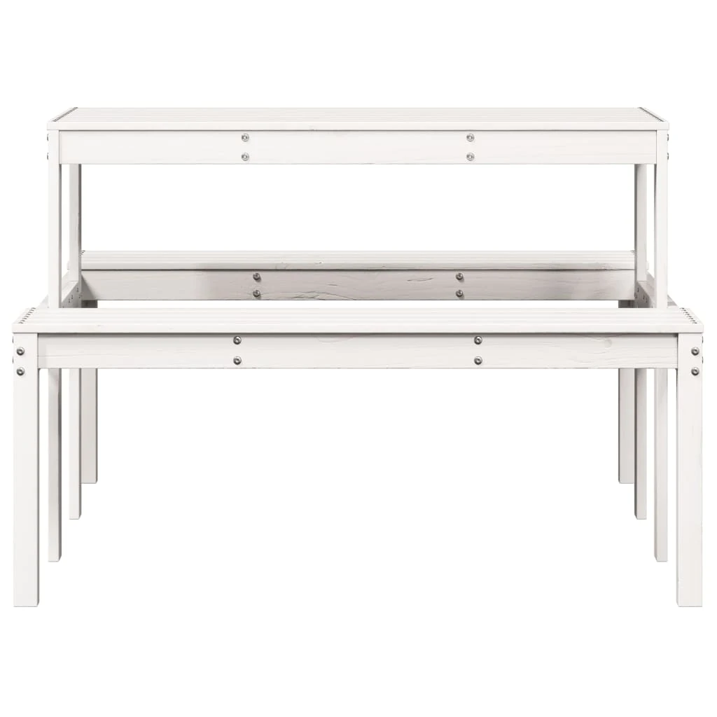 vidaXL Iškylų stalas, baltas, 110x134x75cm, pušies medienos masyvas