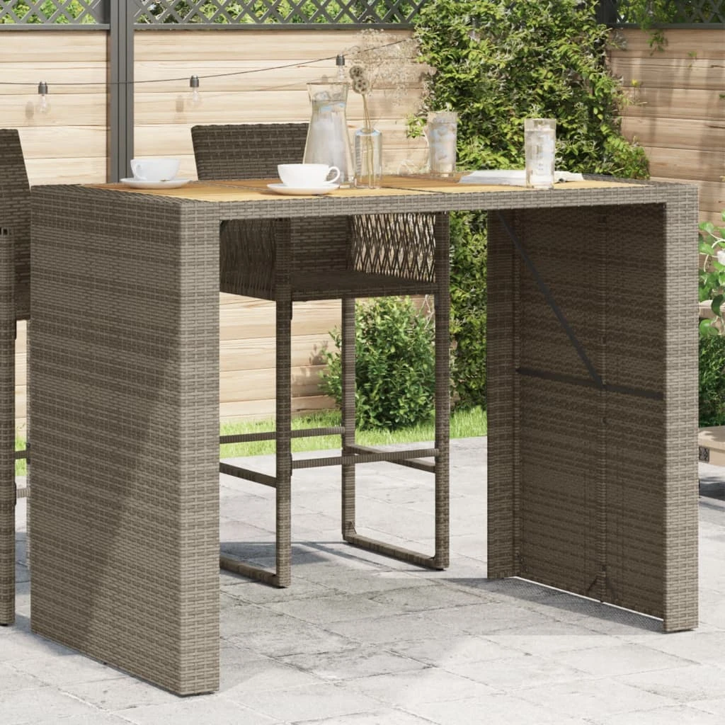 vidaXL Stalas su akacijos stalviršiu, pilkas, 145x80x110cm, PE ratanas