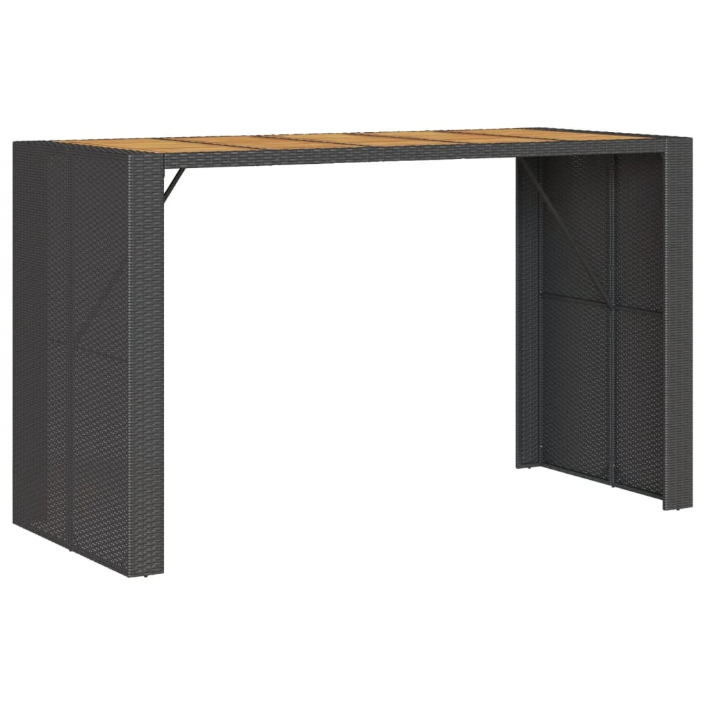 vidaXL Stalas su akacijos stalviršiu, juodas, 185x80x110cm, PE ratanas
