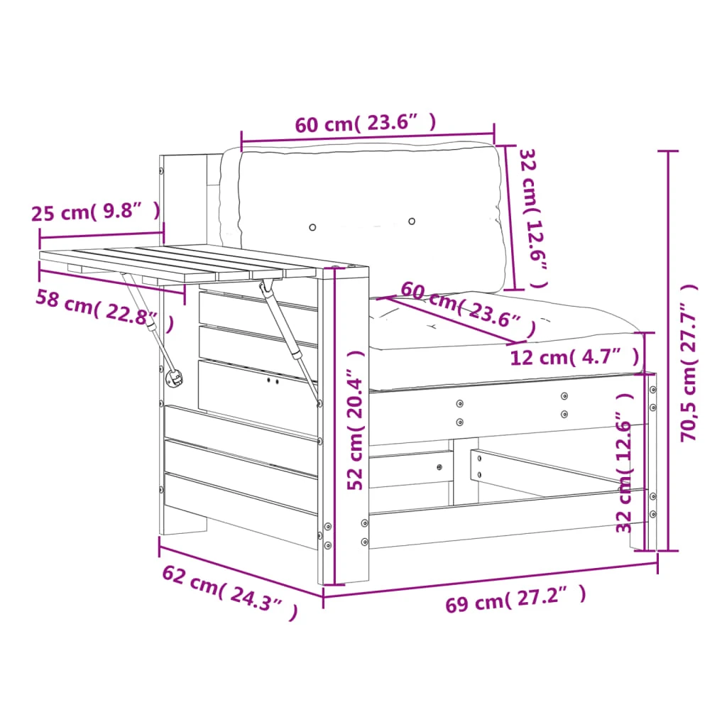 vidaXL Sodo sofos dalis su pagalvėle, pušies masyvas, su porankiu