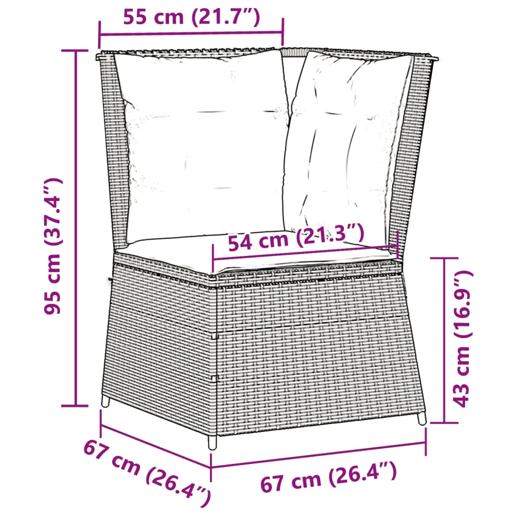 vidaXL Kampinė sodo sofos dalis su pagalvėlėmis, smėlio, poliratanas