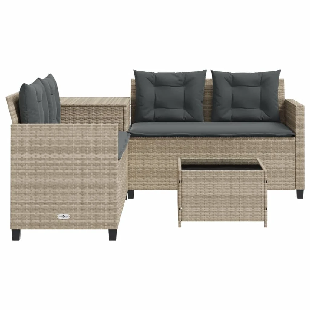 vidaXL Sodo sofa su stalu-pagalvėlėmis, pilka, poliratanas, L formos