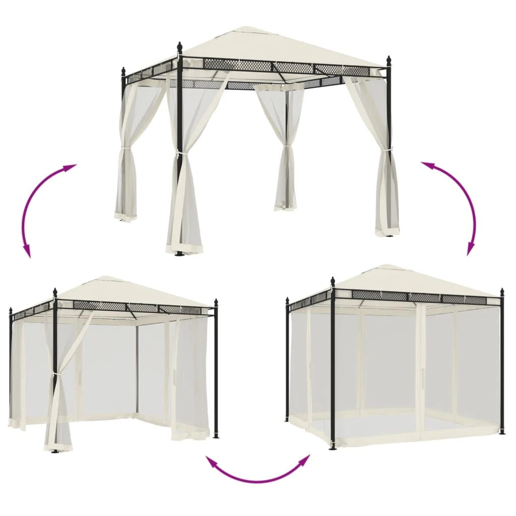 vidaXL Pavėsinė su tinklinėmis sienomis, kreminė, 2,93x2,93m, plienas