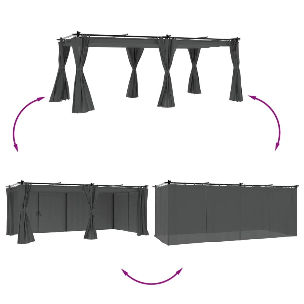 vidaXL Pavėsinė su užuolaidomis, antracito spalvos, 6x3m, plienas