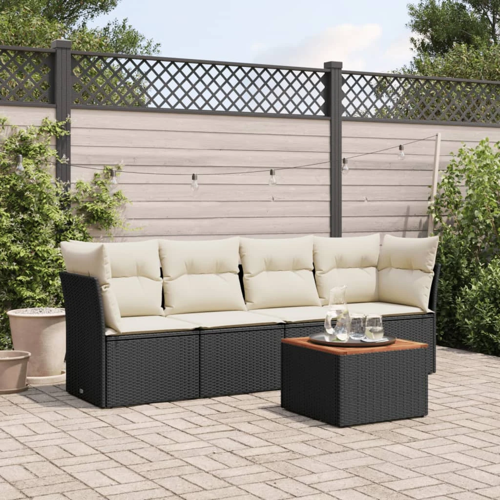 vidaXL Sodo komplektas su pagalvėlėmis, 5 dalių, juodas, poliratanas
