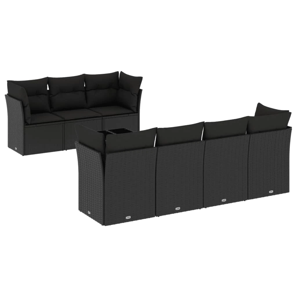 vidaXL Sofos komplektas su pagalvėlėmis, 8 dalių, juodas, poliratanas