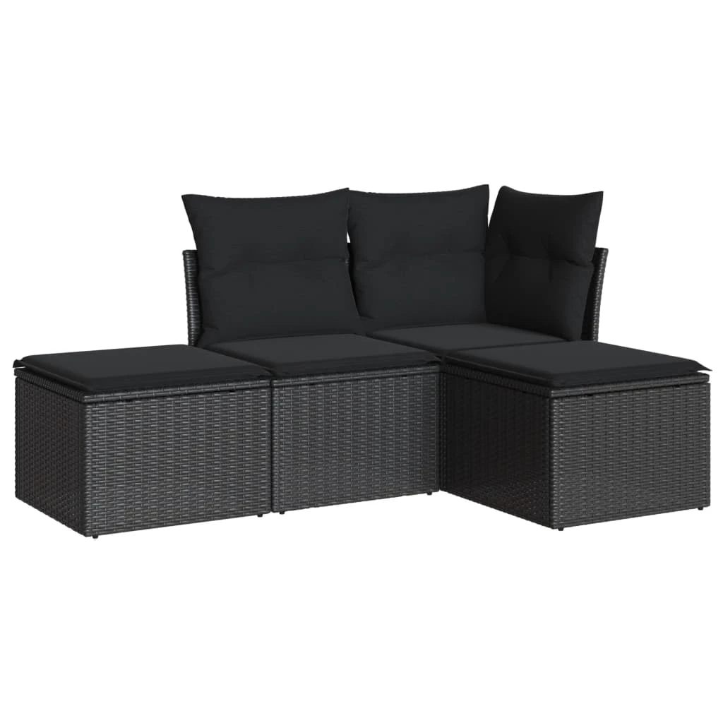 vidaXL Sodo komplektas su pagalvėlėmis, 4 dalių, juodas, poliratanas