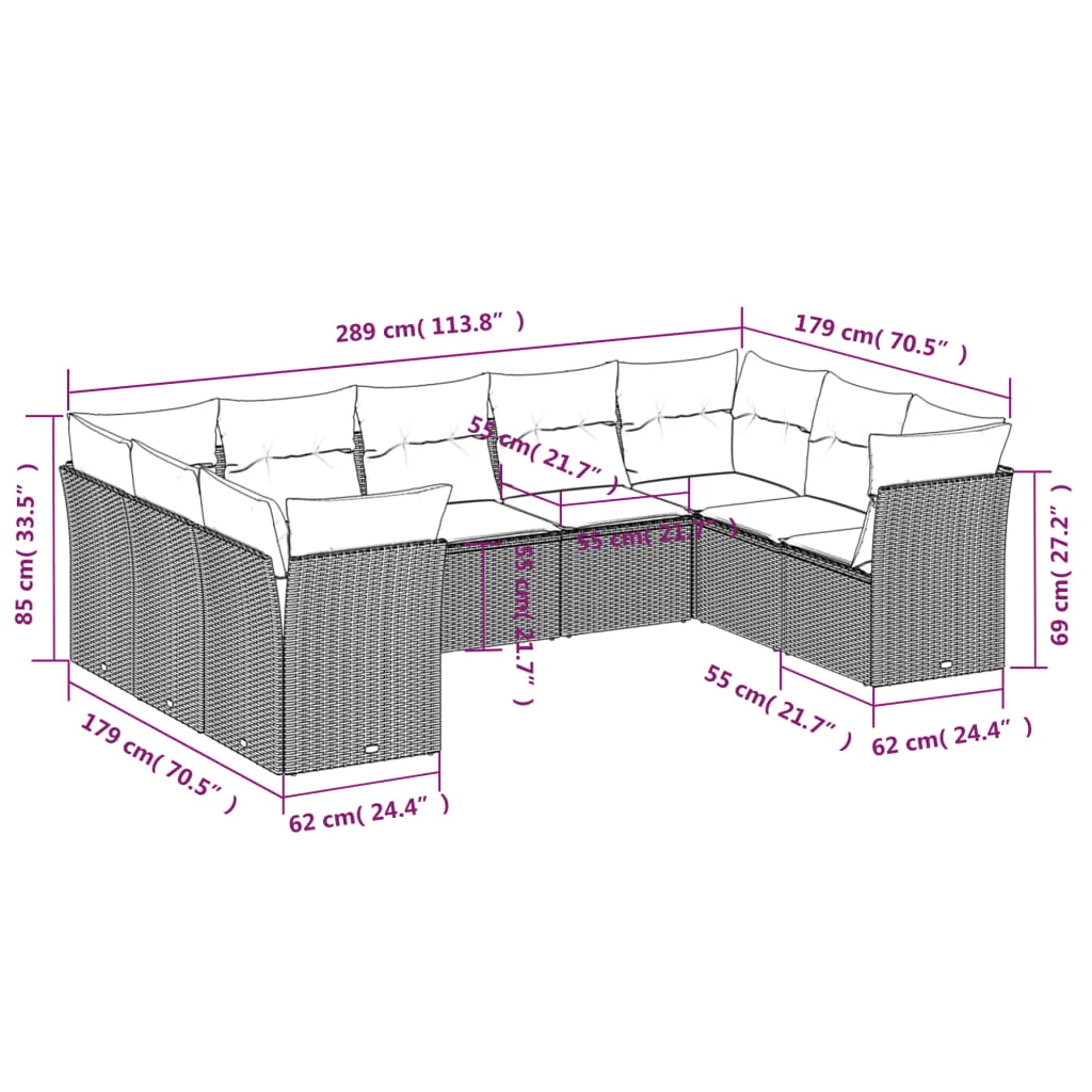 - Bendri sofos matmenys: 289 x 289 x 69 cm (plotis x gylis x aukštis)