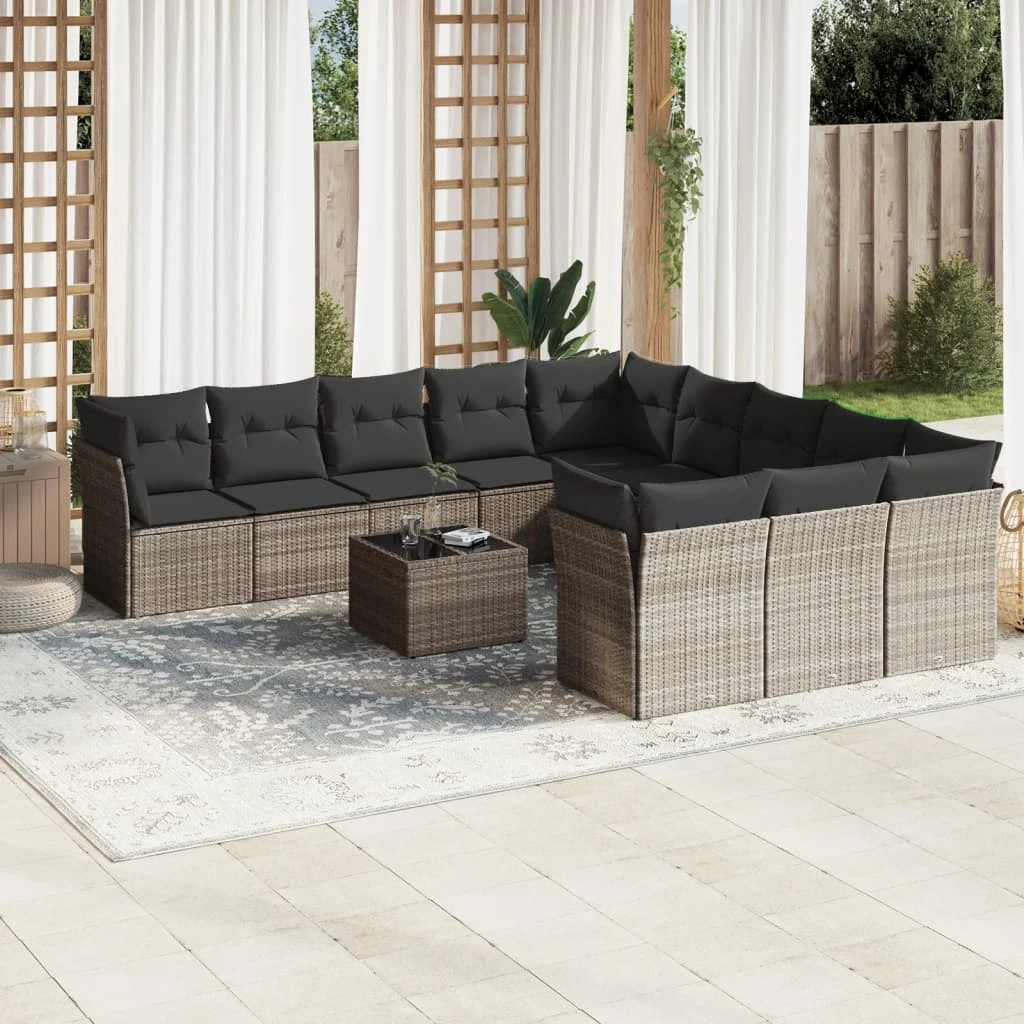 vidaXL Sodo komplektas su pagalvėlėmis, 12 dalių, pilkas, poliratanas