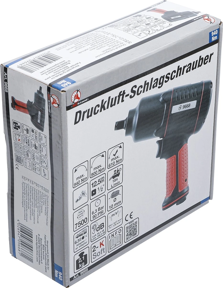 Air Impact Wrench - 12.5 mm ,1-2", - 940 Nm