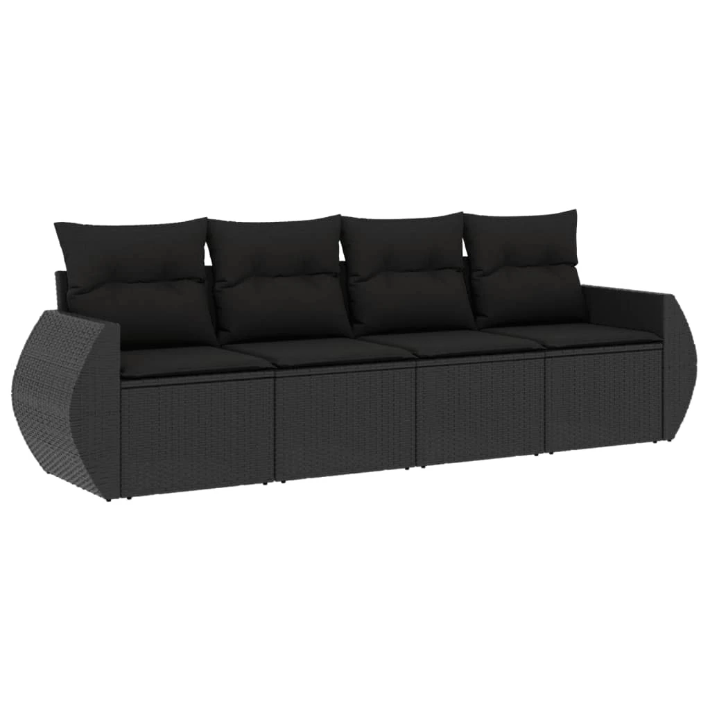 vidaXL Sodo komplektas su pagalvėlėmis, 4 dalių, juodas, poliratanas