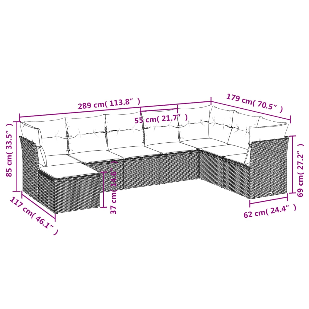 vidaXL Sodo Sofų Rinkinys su pagalve 7 pcs Juoda Poli ratanas