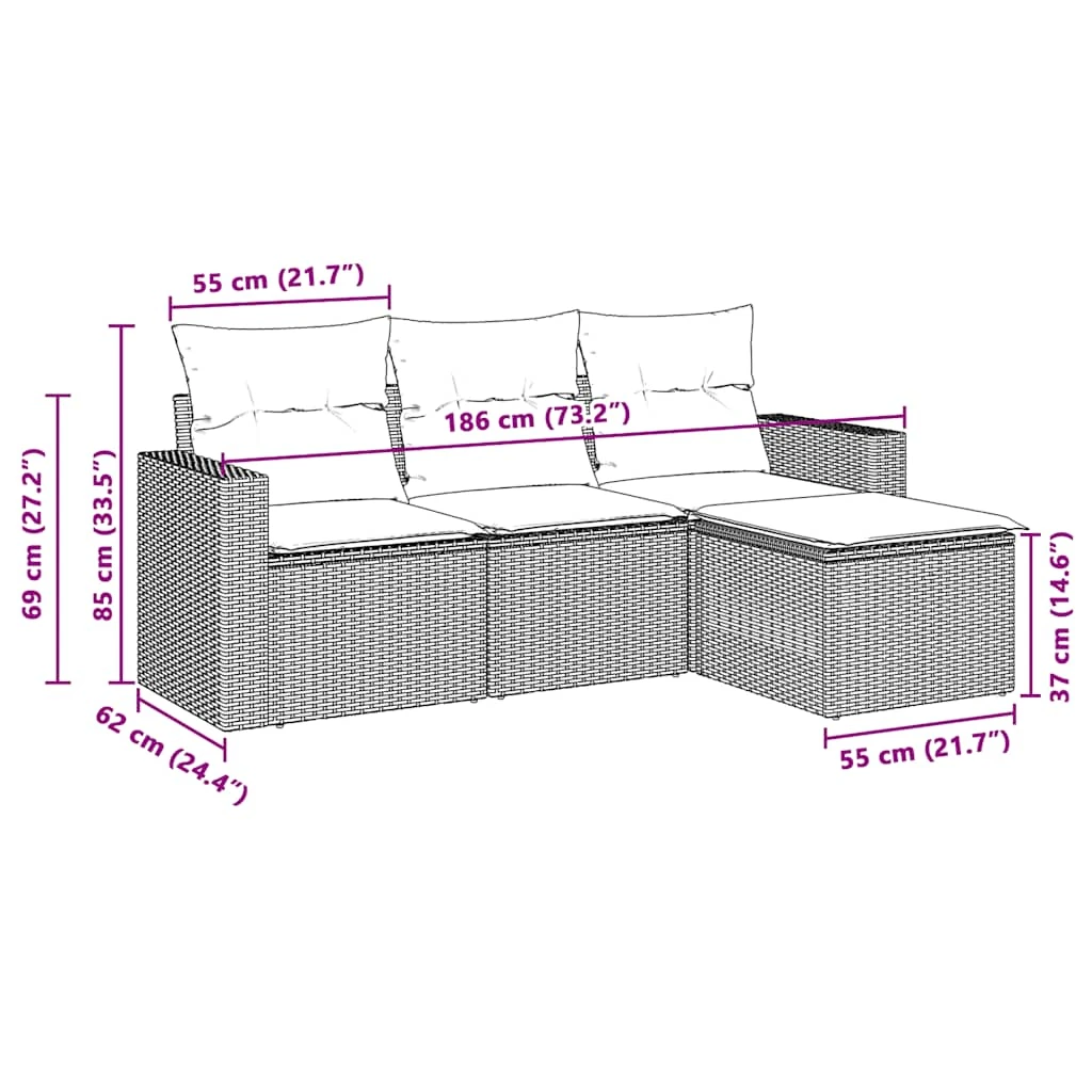 vidaXL Sofos komplektas su pagalvėlėmis, 4 dalių, pilkas, poliratanas