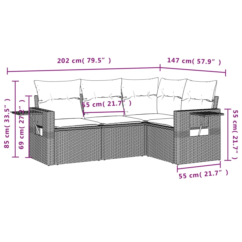 vidaXL Sodo komplektas su pagalvėlėmis, 4 dalių, juodas, poliratanas