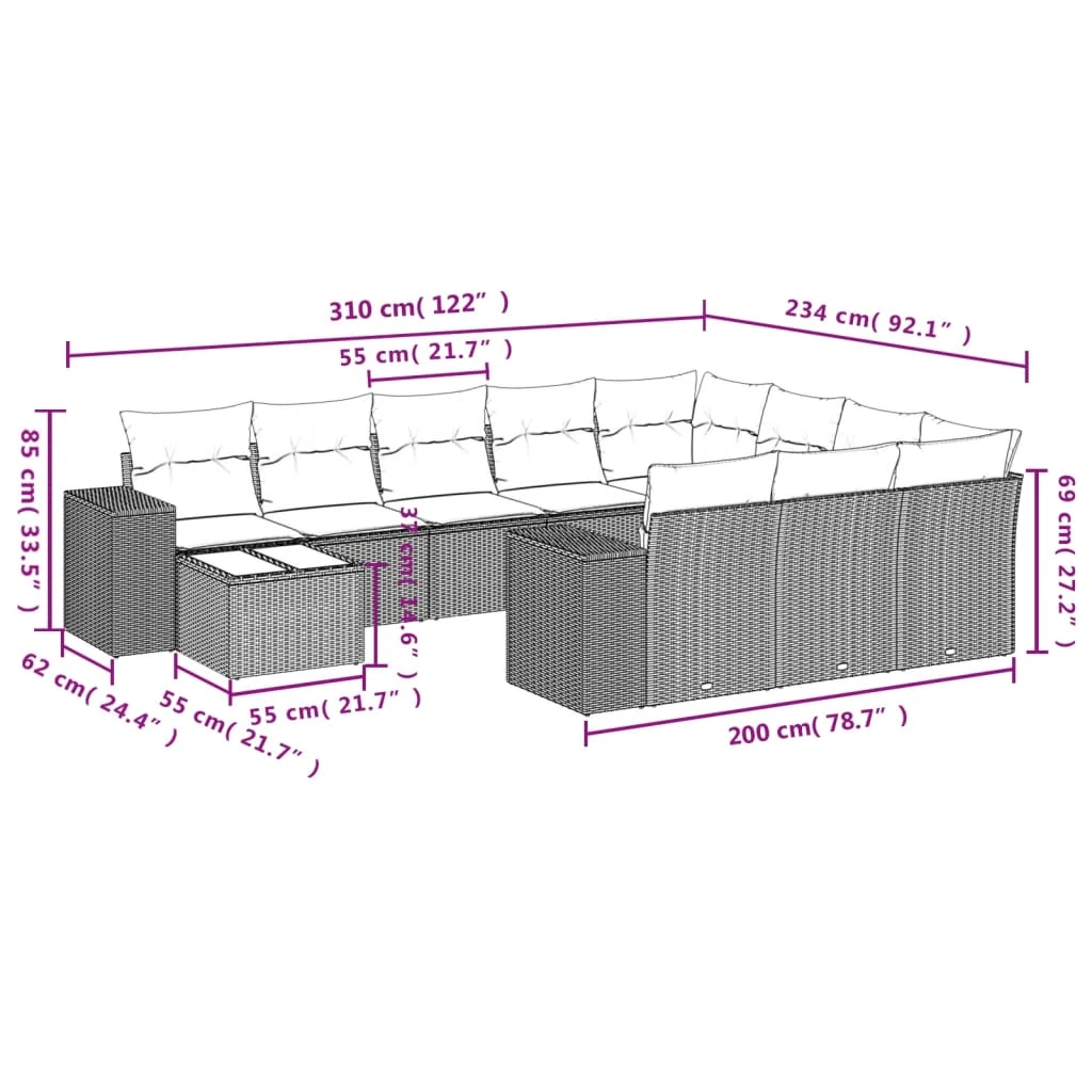 vidaXL Sodo komplektas su pagalvėlėmis, 11 dalių, pilkas, poliratanas