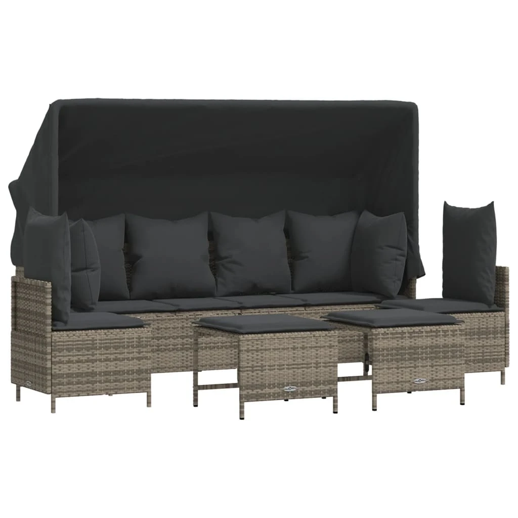 vidaXL Sofos komplektas su pagalvėlėmis, 7 dalių, pilkas, poliratanas