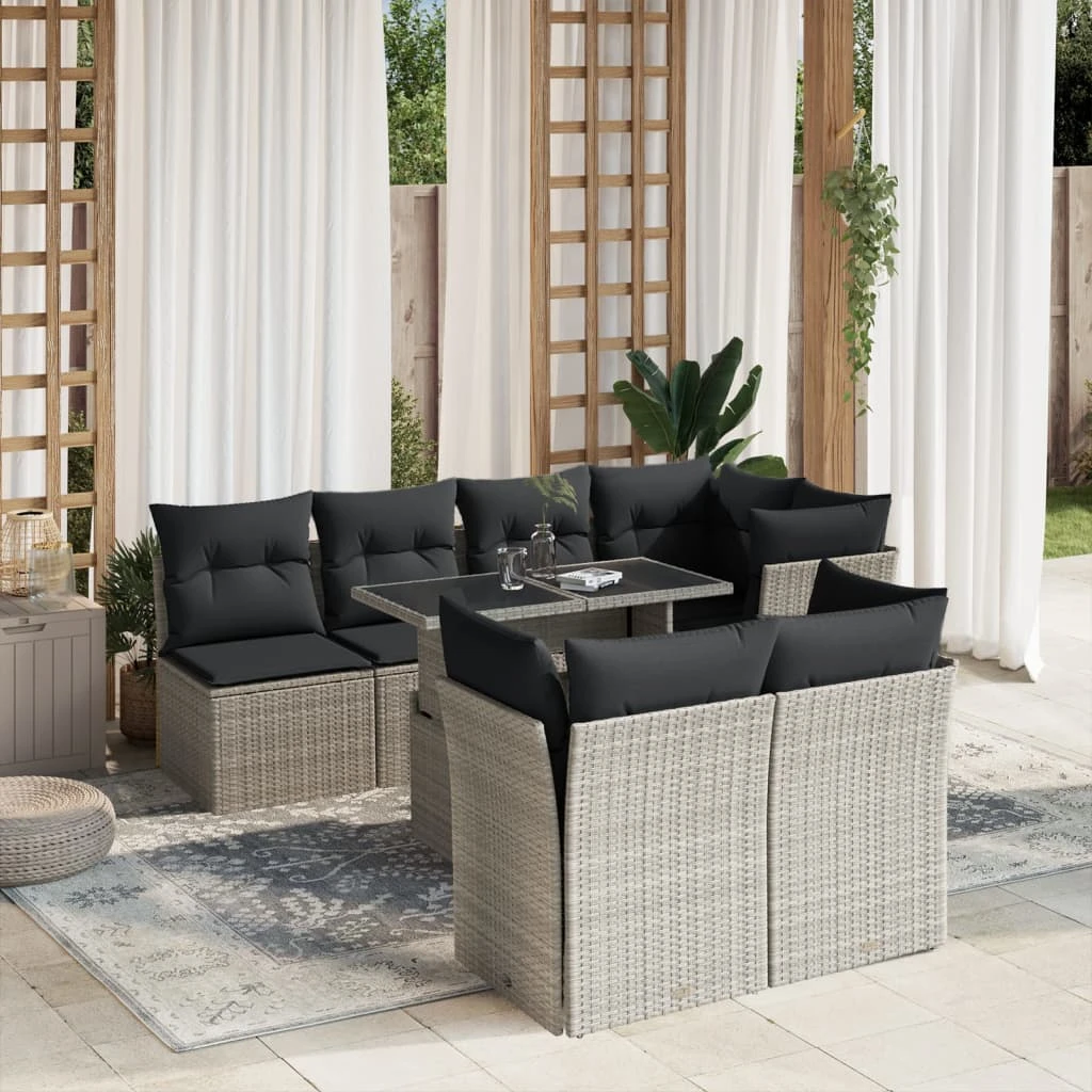 vidaXL Sodo komplektas su pagalvėlėmis, 8 dalių, pilkas, poliratanas