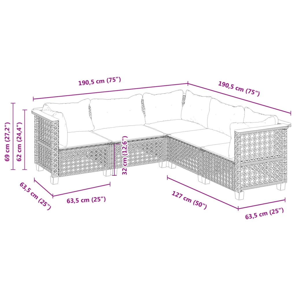 vidaXL Sodo komplektas su pagalvėlėmis, 5 dalių, pilkas, poliratanas