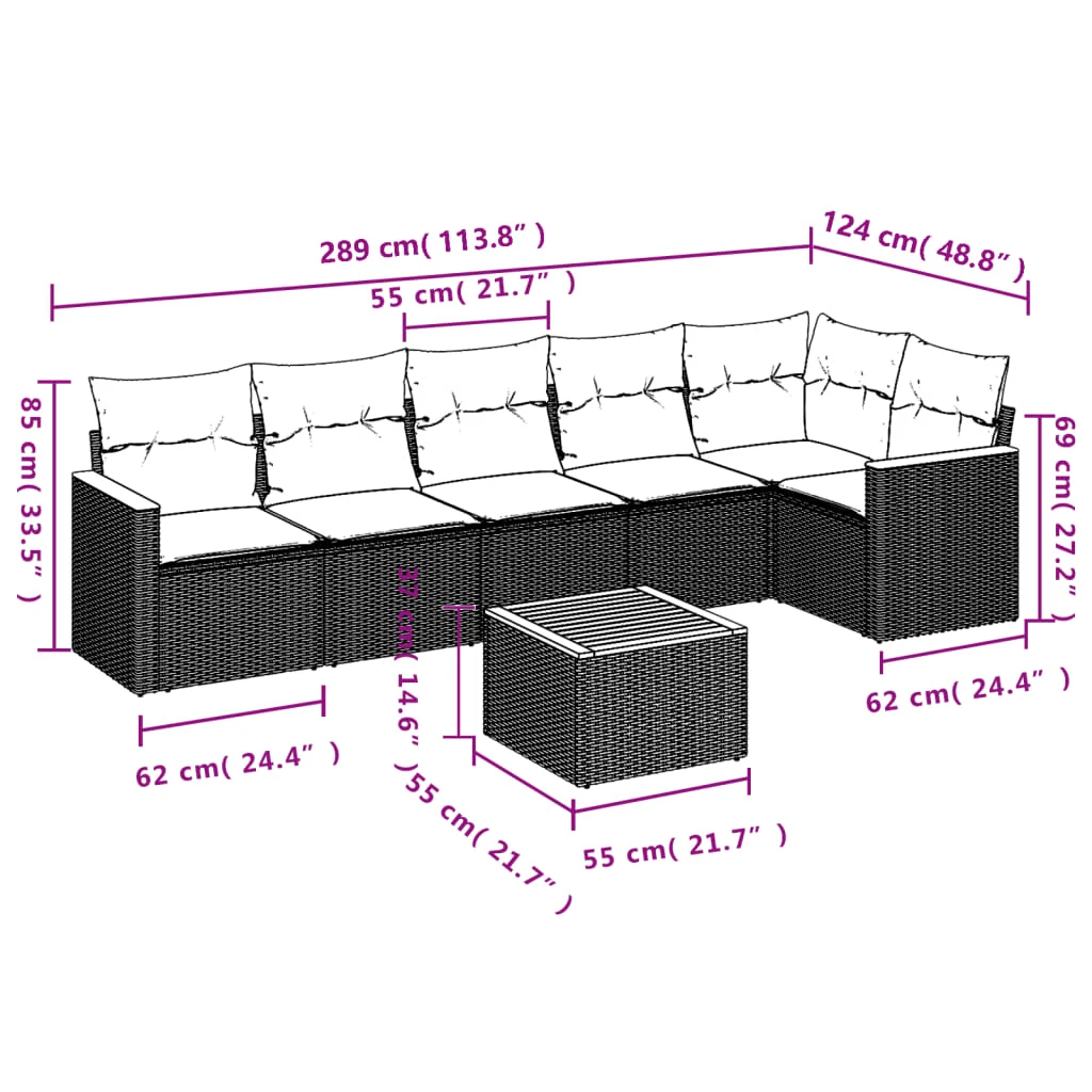 vidaXL Sodo Sofų Rinkinys su pagalve 11 pcs Juoda Poli ratanas