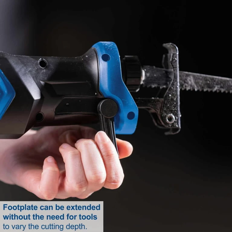 Be raktų ištraukiamas ir sustumiamas atraminis padas skirtingam pjovimo gyliui