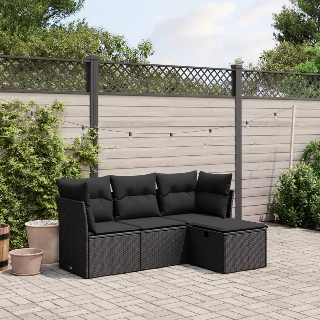 vidaXL Sodo komplektas su pagalvėlėmis, 4 dalių, juodas, poliratanas